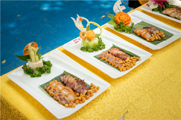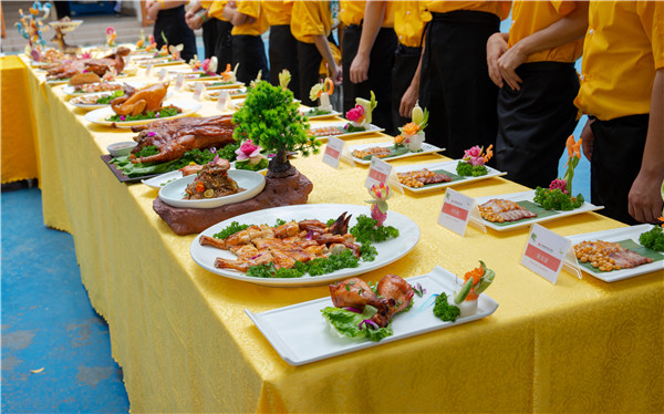 鹵水燒臘市場受眾廣泛,在高級粵菜館、各式茶餐廳到街邊、市場燒臘檔,都有燒臘的身影,而在我們平時參加的宴會中,乳豬、燒鵝、白切雞等各種燒臘拼盤也是“常客”。此次考核展上就擺放了很多同學(xué)們親手制作的燒臘成品,加上精致的擺盤和點綴,幾十道以香、鮮、脆、甜、嫩為主要賣點的燒臘菜肴就呈現(xiàn)在眼前了。