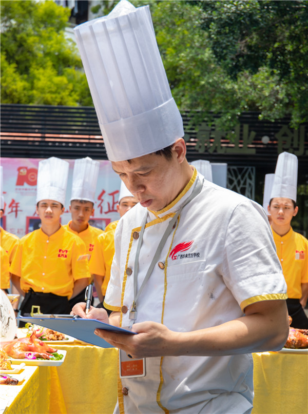 從食材準備到作品呈現(xiàn),每位學(xué)生都在操作臺上獨立操作,而評委老師的考評標準也比平時更為嚴格。評委老師表示,希望通過這些考核,促使學(xué)生們?nèi)〉酶蟮倪M步。