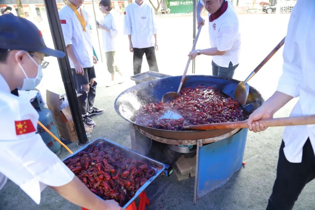 致辭環(huán)節(jié)結(jié)束后,活動迎來了激動人心的開鍋儀式,長安開元教育集團(tuán)學(xué)歷事業(yè)部總經(jīng)理翟總、廣西華南烹飪技工學(xué)校閆校長、何逸奎大師、黃盛大師四人共同掌勺,啟動小龍蝦美食節(jié)開鍋儀式,同時也給我們此次活動起了一個充滿朝氣的開頭!