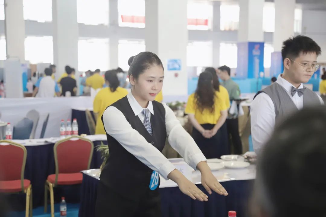 比賽過程中,陽彩靜同學(xué)聽從指揮,遵守比賽規(guī)則,尊重對手和裁判,在規(guī)定時間內(nèi)游刃有余地完成了每個模塊的比賽,專業(yè)的態(tài)度和表現(xiàn)得到了在場評委們的一致認可,充分展現(xiàn)了華南學(xué)子優(yōu)秀的餐廳服務(wù)技能以及優(yōu)良的精神風貌和蓬勃朝氣!