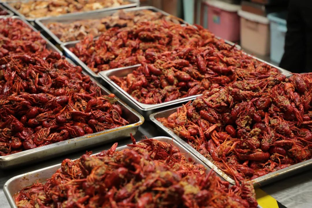 活動現(xiàn)場美食紛呈,香氣撲鼻,外殼通紅油亮的小龍蝦作為主角擺得那是滿滿當(dāng)當(dāng),麻辣、蒜蓉、十三香…多種風(fēng)味滿足小龍蝦愛好者的味蕾。除此之外,還有各式各樣的燒臘、涼菜、中點(diǎn)小吃、西點(diǎn)等美食多達(dá)幾十個品種,每一道精致的美味菜肴都是同學(xué)和老師們共同制作的成果,盡展我校教學(xué)實力與學(xué)習(xí)成效。