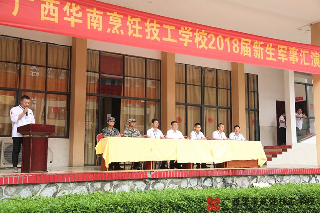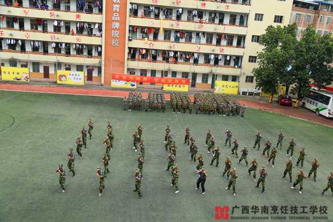 8月17日下午三點(diǎn),廣西華南烹飪技工學(xué)校2018年秋季新生軍訓(xùn)會(huì)操表演在中堯校區(qū)操場上舉行。
