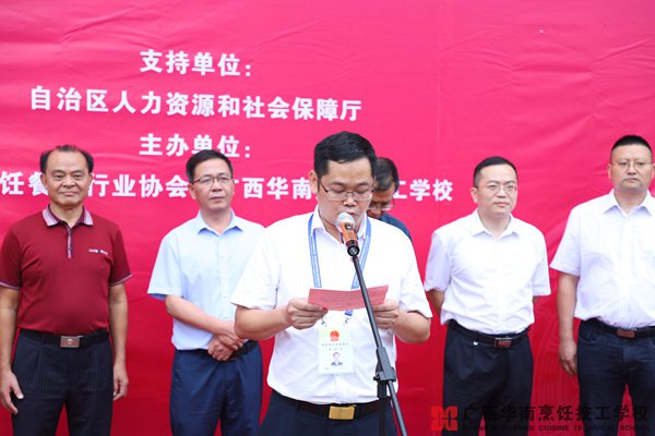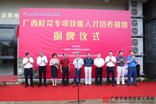 2019年5月31日上午,廣西桂菜專項(xiàng)技能人才培養(yǎng)基地在廣西華南烹飪技工學(xué)校正式揭牌。廣西人力資源和社會(huì)保障廳領(lǐng)導(dǎo),廣西烹飪協(xié)會(huì)領(lǐng)導(dǎo)、桂菜大師、合作單位領(lǐng)導(dǎo)等共100多人參加了揭牌儀式。
