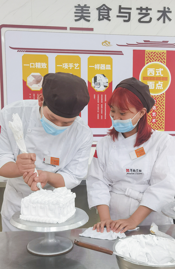 想法一拍即合,于是,兩人便通過(guò)網(wǎng)絡(luò)搜索,了解到廣西華南烹飪技工學(xué)校無(wú)論是在教學(xué)環(huán)境、教學(xué)設(shè)備、師資力量、創(chuàng)就業(yè)幫扶在廣西餐飲培訓(xùn)學(xué)校來(lái)看都是數(shù)一數(shù)二的,他們便決定報(bào)名三個(gè)月西點(diǎn)烘焙創(chuàng)業(yè)班,開(kāi)始屬于他們的西點(diǎn)之旅。