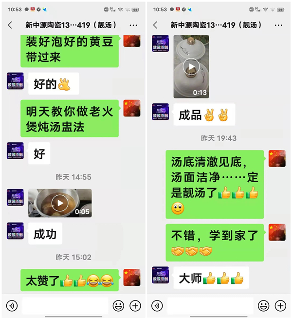 最開始的湯底制作效果不佳,蘇凱東并不氣餒,他把自己做的成品錄了個(gè)視頻通過微信發(fā)給黃大師,黃大師看到后立即指出了問題所在,并給予正確地指導(dǎo),他及時(shí)進(jìn)行了調(diào)整。