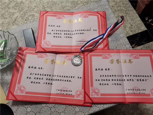 努力付出一定會有回報,僅入校學習一年,當同學們還在沉浸于考取西式面點初級證書的喜悅當中,農(nóng)啟煜就已經(jīng)遠超他人,取得了西式面點高級證書,也因此成為了同學們心目中的學霸。在學習的這一年里,農(nóng)啟煜參加了許多西點比賽并獲得了優(yōu)秀獎項,在2020年榮獲我校華南杯創(chuàng)意蛋糕優(yōu)秀獎、面包手法銀獎,2021年榮獲我校創(chuàng)意蛋糕銀獎、泡芙大賽金獎。