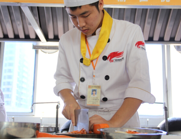 桂林是一個(gè)眾多少數(shù)民族聚居地,不同民族的生活飲食特點(diǎn),形成了獨(dú)特的飲食文化。桂林地方風(fēng)味菜、純樸自然、口味濃郁、酸甜兼容,有著濃濃的草根情懷。生活在美麗的桂林山水之中的王文祥每天都在美食的熏陶下,對(duì)學(xué)習(xí)烹飪充滿(mǎn)了興趣。在對(duì)比廣西其他學(xué)校之后王文祥選擇了到廣西最好的廚師學(xué)校廣西華南烹飪學(xué)校學(xué)習(xí),從進(jìn)到學(xué)校在老師的熱心幫助下王文祥的學(xué)習(xí)突飛猛進(jìn)不僅成為了班里面的學(xué)習(xí)能手。同時(shí),在老師同學(xué)們的鼓勵(lì)和推選下成為了金牌八班班長(zhǎng)。