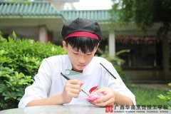譚子康,2014年6月他進入廣西華南烹飪學校,2016年4月畢業(yè)。經(jīng)過兩年的學習,譚子康在學校不僅學到了扎實的基本功,還接觸到了很多自己感興趣的科目,比如熱菜裝飾,果醬、雕刻等。除此之外,他平時還積極參加學校的