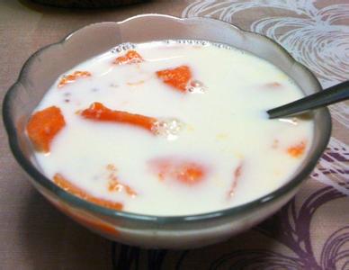 木瓜顏色鮮亮,口味清甜,奶香濃郁,西米顆顆晶瑩剔透,入口爽滑。木瓜富含多種營養(yǎng)元素,豐富的木瓜酶有利于乳腺發(fā)育,木瓜酵素中維生素A等養(yǎng)分能促進(jìn)女性激素分泌。牛奶中蛋白質(zhì)是構(gòu)成乳房細(xì)胞的重要元素。西米能促進(jìn)消化,能使皮膚恢復(fù)天然潤澤,男女老少均可多吃一些。