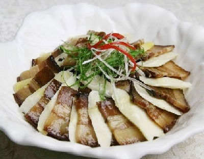 材料:春筍、豬肉。先把春筍剝?nèi),切去老根,再切成片,然后將肉切碎,用生抽、鹽、料酒、胡椒粉腌制10分鐘入味。然后熱鍋熱油,爆香蒜末,倒入肉絲翻炒2分鐘盛起待用。鍋重新洗一遍,倒入適當?shù)牡子停蜏睾蟮谷氪汗S段煸炒,放入鹽、味精和醬油;中火燜燒5分鐘左右至湯汁收干入味,撒一些香蔥就可以了。