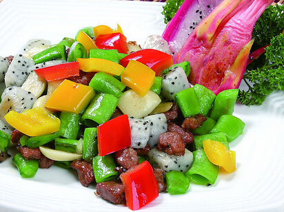 炒火龍果的時候,慎記別下糖,因?yàn)樗呀?jīng)夠甜了。搭配的話,則以海鮮為適合,滴點(diǎn)檸檬汁會很清香。