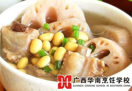 3、蓮藕黃豆排骨湯。主要的食材有:豬排骨、蓮藕、黃豆、料酒、姜片、花椒等。制作方法:將排骨洗干凈改刀成段,蓮藕去皮洗凈切成塊;點(diǎn)火后砂鍋放入油,油溫5成熱時(shí),倒入排骨段翻炒,烹入料酒、高湯、花椒、姜片、黃豆、鹽、藕塊等,待鍋后倒入砂鍋中,燉至肉離骨,出鍋時(shí)撒入香菜末即可食用。特點(diǎn):味道鮮美,香味濃郁,營(yíng)養(yǎng)豐富。
