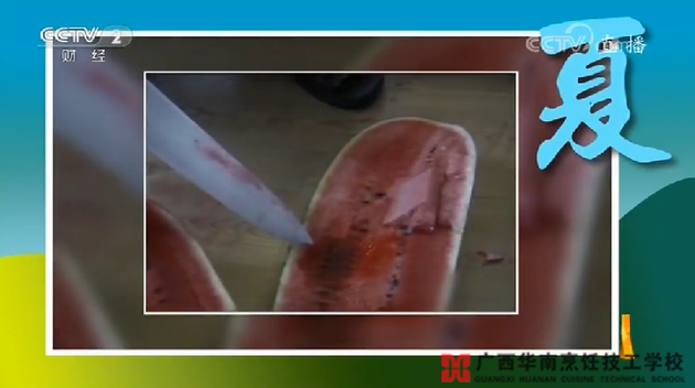 主持人:現(xiàn)場很多人覺得,是啊,騙子不至于舍得花大價錢,我們繼續(xù)破破季節(jié)謠之二,西瓜注射。生活當中很多人會告訴我們說,別挑太紅的西瓜,不是自然長熟的,都是打針打的。
