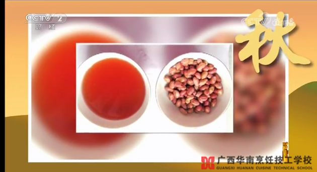 主持人:我們沒有從這個角度試圖理解這個傳言,季節(jié)謠當中為大家展現(xiàn)了這樣一個細節(jié),一杯泡著花生仁的水,真的變紅了。難道不是染過色的嗎?為什么會掉色呢?